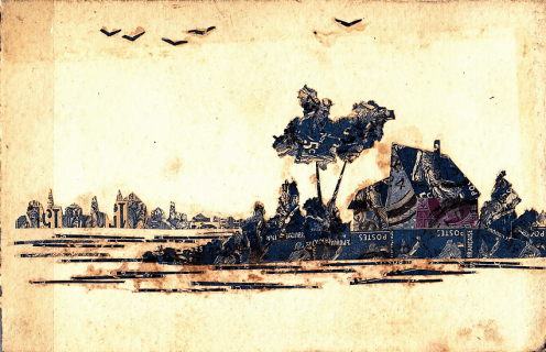 Au début du XXème siècle certains éditeurs de cartes ont diffusé des cartes blanches, sur carton épais qui pouvaient servir de support à des dessins ou des collages. De nombreuses cartes postales ont circulé au début du XXe siècle, montrant des paysages réalisés avec de l’aquarelle et des timbres découpés et collés. Ce sont des découpis de timbres sur carte, représentant  des paysages, des créations pour accompagner une fête, des vœux … ce sont souvent des fleurs, parfois des personnages… Chaque carte est unique, cela va de soi.