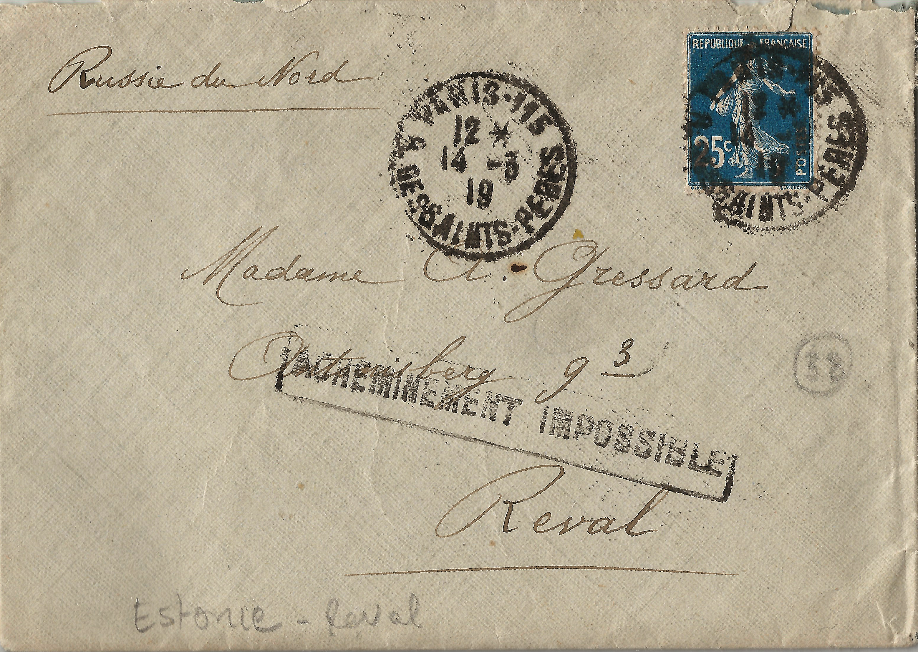 Après le traité de Brest Litovsk de décembre 1917, l’Estonie et les provinces baltes de Russie devinrent indépendantes, la date retenue étant celle de la proclamation de l’indépendance estonienne le 24 février 1918. En fait, elles furent occupées par l’armée allemande. Le 3 mars, avec la signature de la paix de Brest Litovsk, cette fois, la Russie reconnut cette indépendance et en août de la même année, elle accepta dans le cadre d’une clause additionnelle de renoncer à sa souveraineté sur les provinces baltes. En novembre 1918, avec l’effondrement de l’Empire allemand, l’Estonie se vit de nouveau menacée par les russes dénonçant le précédent traité après qu’un Comité révolutionnaire provisoire d’Estonie se proclama seul pouvoir légal en Estonie et demanda aux russes de « libérer le pays ». La guerre qui s’en suivit dura de janvier 1919 (interruption de notre service postal) à février 1920 quand fut signé le traité de Tartu reconnaissant l’indépendance de l’Estonie.