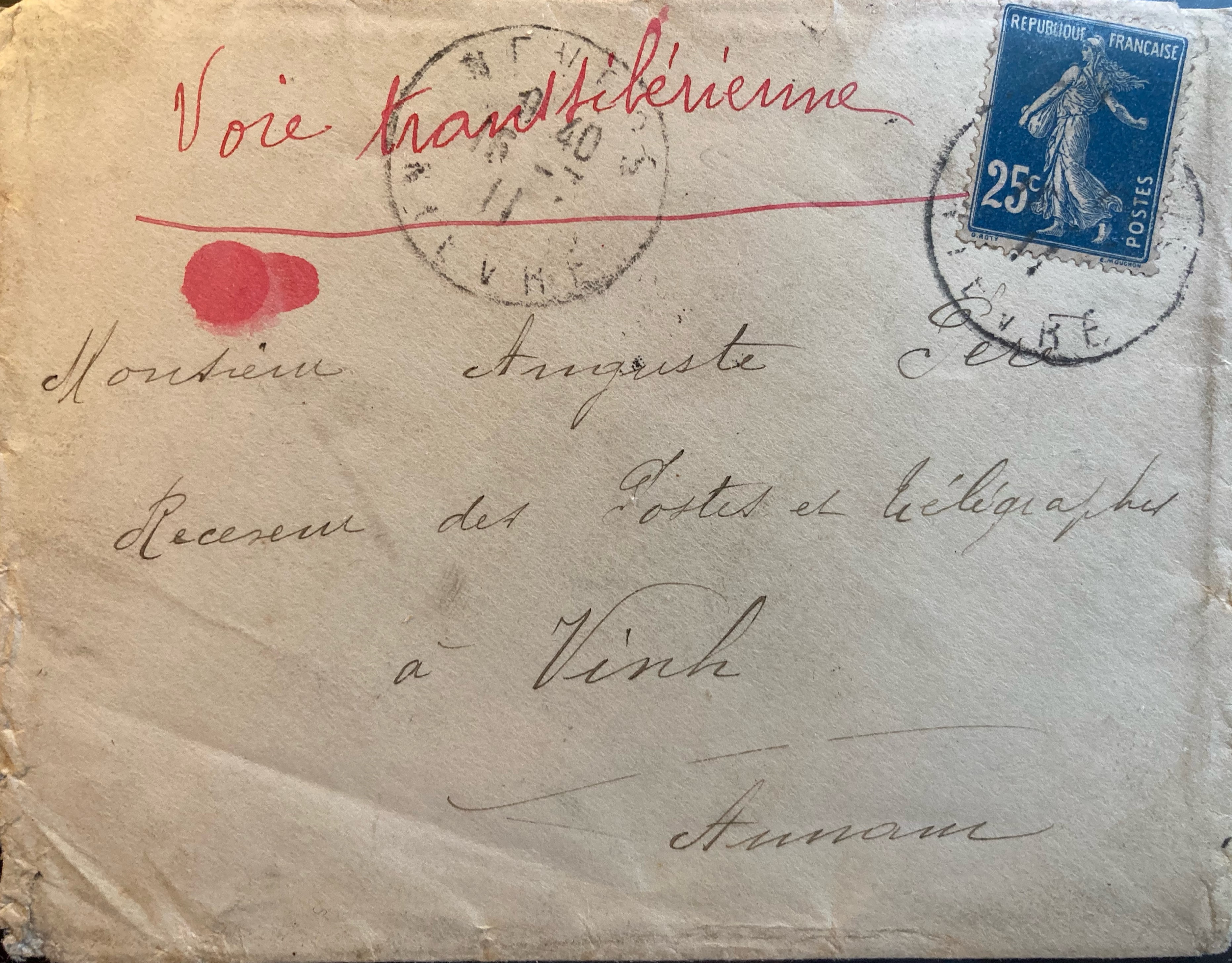 Le courrier parti de Nevers le 16 juillet est arrivé à Shanghai le 11 août, puis Haïphong le 12 août, enfin à destination à Vinh le 13 août.