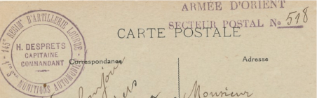 Secteur Postal 501 et 501 A, 501 B, 501 C, 501 D : Quartier général de l’Armée française d’Orient