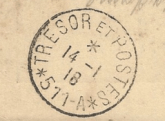 Trésor et Postes 513 (infanterie coloniale engagée dans la bataille de la boucle de le Cerna, 8 novembre 1917), affranchie pour l’Égypte après contrôle militaire par le Trésor et Poste 502, le 15 novembre 1917.
