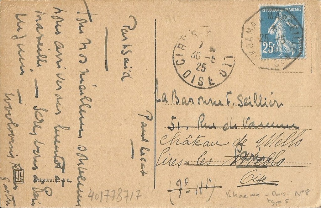 Yokoama à Marseille N°8, 25 mai 1925 pour Cires (Oise)
