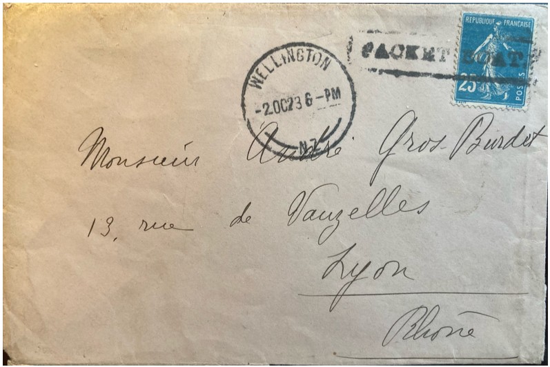 Wellington 02 octobre 1923, cachet à date et griffe PACKET BOAT