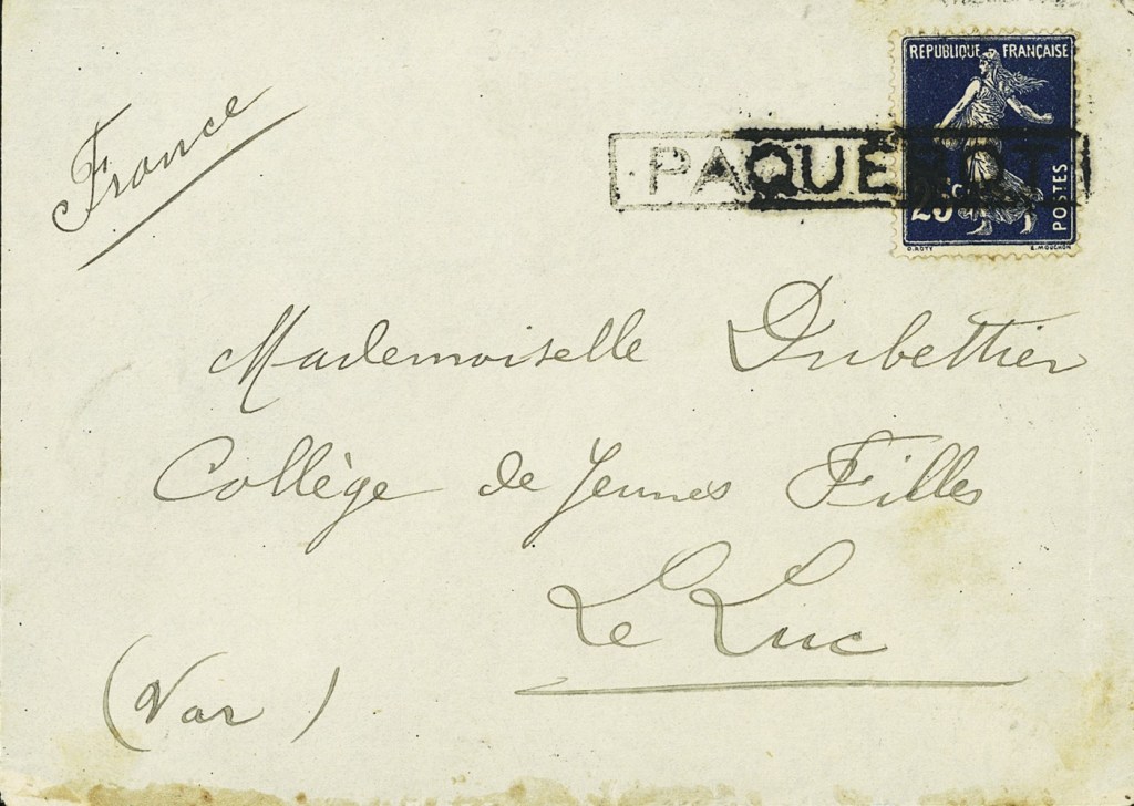 L’utilisation des marques « PAQUEBOT » a été réglementée en 1894. Il s’agissait alors d’apposer la marque sur une correspondance apportée « à la main », c’est à dire en dehors des dépêches régulières. Le mot « paquebot » a été choisi pour un usage international car le français était, et est, la langue officielle utilisée lors des réunions du Congrès de l’U.P.U. Ainsi, le bureau du port de débarquement marquait les correspondances venues « de pleine mer », que les navires fussent français ou étrangers, en plus du timbre à date ordinaire. Ceci était destiné à indiquer que la correspondance n’était pas originaire du bureau français qui, le premier, l’avait timbrée. Cette griffe est devenue classique et a fonctionné jusqu’en 1939 sans changement.